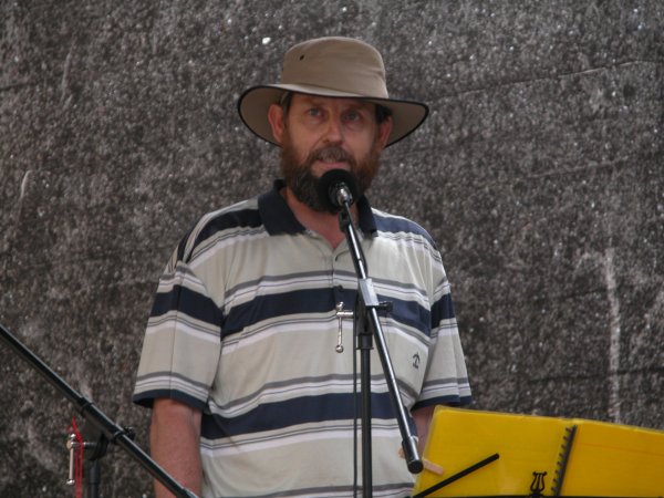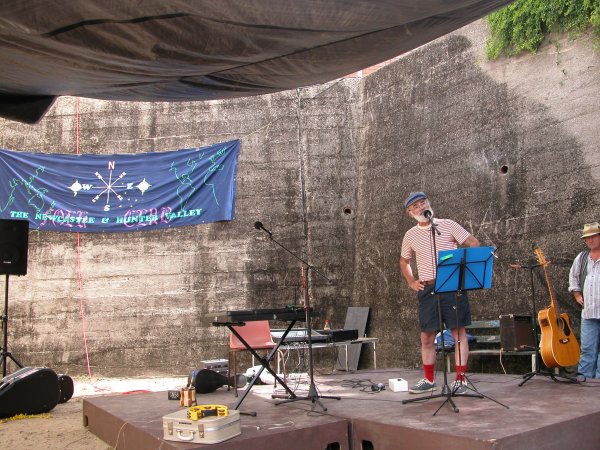 Charlie at the Newcastle/Hunter Valley Folk Club stage at a street fair in Newcastle